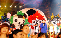 在迎接2008年奧運會一周年倒計時之際,秦皇島賽區(qū)在山海關舉行慶典活動。本報記者:石倩倩