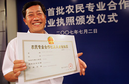 上海崇明三星柑桔專業(yè)合作社的法定代表人茅永新領(lǐng)到營(yíng)業(yè)執(zhí)照。 |