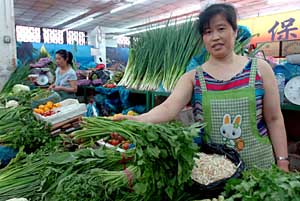 | 長春市永昌綜合市場賣菜的徐艷杰說:“這兩天蔬菜價格降了一點,但還是比往年貴了不少!毙氯A社記者 蔣林