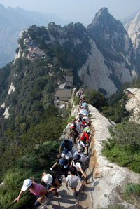 游客在攀登華山險(xiǎn)道飛魚嶺登山通道。新華社發(fā) | 首屆中國體育旅游博覽會日前在上海閉幕。體育與旅游,都是熱門詞匯,兩者在北京奧運(yùn)會的背景下結(jié)合在一起,更是吸引了海內(nèi)外客商、新聞媒體和體育旅游愛好者的廣泛關(guān)注。 在國外,體育旅游已經(jīng)擁有了比較成熟的市場,在北京奧運(yùn)會來臨之際,中國體育旅游能否擁有一片燦爛天地?