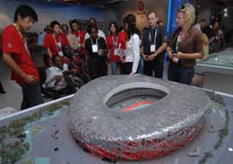 “鳥巢”的鋼結(jié)構(gòu)在世界上獨一無二。整個工程沒有使用一公斤外國鋼鐵,是地地道道的“中國造”。 。ū緢筚Y料照片) | 隨著2008年奧運會開幕日益臨近,奧運場館逐步竣工,全世界越來越多的目光投向了東方的奧運之城——北京。在這座有著兩千多年建城史、八百多年建都史的古城中,次第崛起的眾多造型別致、匠心獨具的奧運建筑,無不閃現(xiàn)出東方智慧中蘊藏的創(chuàng)新之魂。