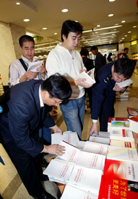 10月26日,上海市市民爭相購買十七大報告。新華社記者:伍婧丹