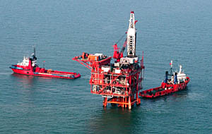 | 中國海洋石油總公司所屬的采油平臺正在渤海海面上作業(yè)。本報資料照片 新華社記者 何俊昌