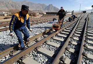 | 中鐵天路養(yǎng)護工程有限公司的工人在西藏堆龍德慶縣境內(nèi)對青藏鐵路進行檢查和養(yǎng)護。新華社記者 覺果