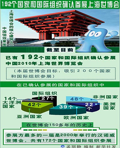 192個(gè)國(guó)家和國(guó)際組織確認(rèn)參展上海世博會(huì)