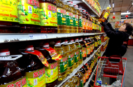 前不久沈陽(yáng)市食用油價(jià)格開(kāi)始下調(diào)。一位顧客在沈陽(yáng)大東副食商場(chǎng)選購(gòu)食用油。新華社記者:謝環(huán)馳 攝 |