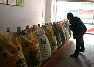 | 去年底以來(lái),湖北農(nóng)村市場(chǎng)化肥價(jià)格大幅上漲。圖為一位物價(jià)管理人員在湖北監(jiān)利縣一農(nóng)資配送點(diǎn)查看化肥市場(chǎng)價(jià)格情況。新華社記者