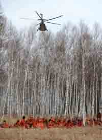 武警內(nèi)蒙古大興安嶺森林支隊(duì)官兵在撲火前線(4月20日攝)。 4月16日,內(nèi)蒙古大興安嶺畢拉河、烏爾旗漢發(fā)生森林大火,分為4個(gè)火場(chǎng)。經(jīng)過4晝夜奮力撲救,到4月20日8時(shí),經(jīng)飛機(jī)巡視所有火場(chǎng),并綜合各火場(chǎng)情況報(bào)告,整個(gè)火場(chǎng)外線明火全部撲滅;饒(chǎng)進(jìn)入全面清理階段。 |