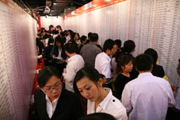 在日前舉行的2008武漢春季房地產(chǎn)交易會(huì)上,二手房交易現(xiàn)場(chǎng)吸引了許多購房者。此次交易會(huì)共推出2.5萬余套商品房(含二手房)供購房者挑選,其中90平方米以下的中小戶型占總套數(shù)的50%以上。新華社發(fā)(王振武