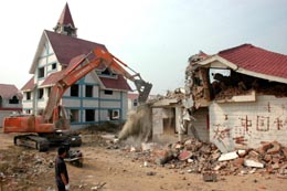 北海市一直是全國房地產(chǎn)熱點(diǎn)城市。上個世紀(jì)九十年代初的“房地產(chǎn)熱”曾震動全國,在宏觀調(diào)控后遺留了大量“爛尾樓”。房地產(chǎn)會不會再度成為北海市的“滑鐵盧”,備受關(guān)注。圖為2006年底拆除爛尾別墅時的情景。 | 今年3月份起,廣西北海市住房交易量與價格急劇飆升,交易面積比2月份增長336.9%,價格上漲3.9%。幾乎與去年同期,北海市房價再次出現(xiàn)大幅上漲。在宏觀調(diào)控效果日益顯現(xiàn),深圳、北京等城市樓市人氣轉(zhuǎn)淡、觀望情緒加重之時,北海市這種“逆市上揚(yáng)”隱藏何種“玄機(jī)”?