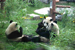攝 | 咔!咔!咔! 當(dāng)裝有八個(gè)奧運(yùn)大熊貓籠子的拖車從首都機(jī)場(chǎng)貨機(jī)停機(jī)坪緩慢地開到貨站口,在貨站口守候了近一個(gè)小時(shí)的40余名清華大學(xué)大熊貓協(xié)會(huì)的志愿者們紛紛舉起了相機(jī)!翱此鼈兌嗫蓯郯!”一名女志愿者一邊說,一邊把手中的相機(jī)對(duì)準(zhǔn)了最先“出鏡”的“翠翠”和“朵朵”。 來自四川臥龍中國(guó)保護(hù)大熊貓研究中心的八只大熊貓經(jīng)過兩個(gè)小時(shí)30分的空中飛翔后,于5月24日下午4點(diǎn)23分到達(dá)首都機(jī)場(chǎng)。由于臥龍是地震災(zāi)區(qū),這八只大熊貓被看做是特殊的“受災(zāi)轉(zhuǎn)移群眾”。 晚上6點(diǎn)10分,八只臥龍熊貓寶寶經(jīng)過成都到北京的漫長(zhǎng)旅程,終于到達(dá)北京動(dòng)物園新熊貓館。記者看到,剛剛落成的新熊貓館全面進(jìn)行了清掃和消毒,并在運(yùn)動(dòng)場(chǎng)里設(shè)立了棲架、木踏板、游玩的水池,鋪種了草坪。運(yùn)動(dòng)場(chǎng)背景是美麗壯觀的臥龍山區(qū)美景,動(dòng)物棲架的立柱上畫有藏、羌族風(fēng)格的圖案。 據(jù)北京動(dòng)物園有關(guān)人士介紹,新建的大熊貓館內(nèi)七間獸舍、四個(gè)運(yùn)動(dòng)場(chǎng)全面進(jìn)行了清掃和消毒。每間獸舍內(nèi)還安裝了空調(diào)和錄像監(jiān)控設(shè)備。八只大熊貓每天有200公斤來自河南的新鮮竹子和40公斤鮮嫩竹筍及蘋果、胡蘿卜等食品供給。 6點(diǎn)15分,剛剛進(jìn)入陌生新家的八只奧運(yùn)熊貓寶寶開始大吃竹葉,一點(diǎn)也沒有“認(rèn)生”的感覺,好像就在臥龍家鄉(xiāng)一樣。記者看到,最能吃的是“福娃”,它竟然撇開了嬉戲打鬧的兄弟姐妹獨(dú)自抱著竹子大嚼大啃,一點(diǎn)兒也不在意玻璃幕墻外記者們頻頻閃爍的閃光燈。 據(jù)北京動(dòng)物園介紹,經(jīng)過一段適應(yīng)期后,預(yù)計(jì)6月底之前,這批臥龍大熊貓將正式與北京游客見面,屆時(shí)動(dòng)物園還將開展為災(zāi)區(qū)野生動(dòng)物保護(hù)區(qū)重建的募捐活動(dòng),有能力的市民可認(rèn)養(yǎng)大熊貓。 |