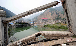 震后破碎的北川縣城區(qū)。新華社記者 楊磊