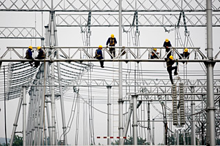 | 安徽省電力公司加快在建發(fā)電廠送出項目的建設速度,力爭早日并網(wǎng)發(fā)電,以緩解今夏華東電網(wǎng)用電缺口。圖為安徽省電力公司員工在淮北500千伏濉溪變電站進行接火作業(yè)。新華社發(fā)(王文