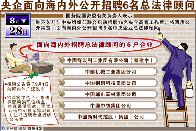 央企面向海內外公開招聘6名總法律顧問