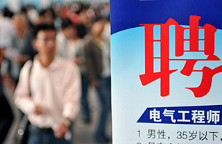 | 9月20日,求職者在人才招聘會(huì)上一展臺(tái)前走過(guò)。新華社記者 高增雙