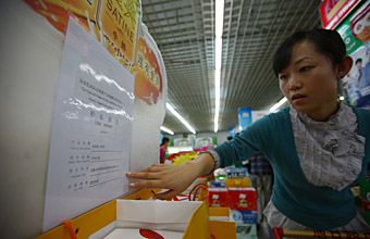 消費者在北京一超市閱讀牛奶的檢驗報告。新華社記者 邢廣利