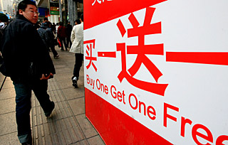 走進(jìn)上海各大商場(chǎng),“滿300送300券”“買(mǎi)300折150元”的海報(bào)滿目皆是,人流如浪潮般涌來(lái),促銷(xiāo)員高分貝的“特賣(mài)”聲音敲擊耳膜,讓人們暫時(shí)忘記了正在波及全球的金融風(fēng)暴。 試衣間門(mén)口、收銀臺(tái)前、電梯上下,“排隊(duì)”成為無(wú)一例外的“規(guī)定動(dòng)作”。在上海梅龍鎮(zhèn)廣場(chǎng),一名等待試衣的女孩氣喘吁吁,手里抱著大衣,肩上搭著褲子,“排一次隊(duì)不容易,索性把看上的衣服都帶進(jìn)去一次試好!彼f(shuō)。 上海南京路眾多商廈自11月上旬起啟動(dòng)“百日營(yíng)銷(xiāo)”活動(dòng),用明扣或打折送券等方式擴(kuò)大銷(xiāo)售。12月6日、7日兩個(gè)雙休日,新世界商場(chǎng)銷(xiāo)售額一舉突破億元大關(guān),僅7日接待客流接近50萬(wàn)人次,逼近國(guó)慶黃金周日最高客流,日銷(xiāo)售額突破5800萬(wàn)元。第一百貨、永安百貨、巴黎春天等商場(chǎng)也紛紛展開(kāi)攻勢(shì),各類(lèi)營(yíng)銷(xiāo)活動(dòng)此起彼伏,面對(duì)不息的人流,部分店家只好采用“進(jìn)一批,出一批”的方法分批入場(chǎng)。全場(chǎng)買(mǎi)贈(zèng)的營(yíng)銷(xiāo)策略也吸引了不少男士,“平日里不愛(ài)逛商場(chǎng),但這次傾巢而出也是明智之舉,實(shí)惠啊!币蝗簳r(shí)尚男士穿梭在人群里,格外顯眼。