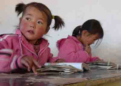 12月1日,在隴南市武都區(qū)安化鎮(zhèn)雙廟村的教學(xué)點(diǎn),一年級(jí)學(xué)生宋小倩(左)和同桌王娟麗用手指蘸著唾沫,在課桌上練習(xí)老師剛剛教過(guò)的生字。 |