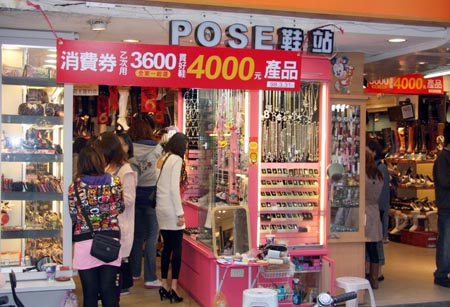 1月18日,臺(tái)北鬧市西門的一家商鋪打出優(yōu)惠標(biāo)語,吸引顧客用消費(fèi)券消費(fèi)。新華社記者:李凱攝 | 據(jù)新華社臺(tái)北1月18日電