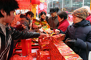 | 新春佳節(jié)將至,各地年貨市場也逐漸升溫。安徽合肥的一些大型超市前開設(shè)了專門的年貨市場供市民們選購。從南北干貨、各地特產(chǎn),到各色糖果、節(jié)日用品。選購年貨備新年的市民絡(luò)繹不絕。新華社發(fā)(實習生