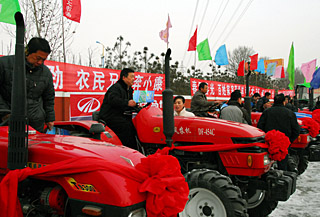 | 1月20日,長春市二道區(qū)農(nóng)民組團來到長吉高速北線的汽車農(nóng)機工程機械大市場采購農(nóng)機具,為今年的春耕備耕做準備。時下,國家為拉動內(nèi)需出臺的一系列優(yōu)農(nóng)惠農(nóng)的政策,增強了農(nóng)民們購買農(nóng)機具的信心。新華社記者