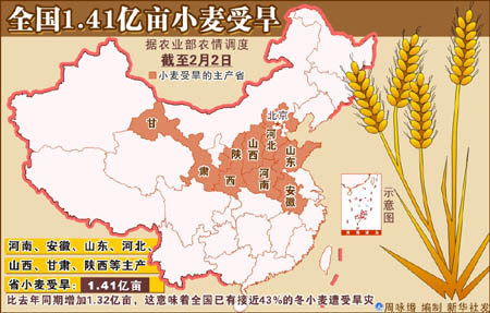 春節(jié)過后,小麥即將進(jìn)入返青期。為了打贏抗旱保苗奪豐收這場硬仗,河南提出要集中全力,在未來10天時間,把全省7000多萬畝小麥再普遍澆灌一遍。 根據(jù)最新統(tǒng)計,河南受旱面積已達(dá)到4519萬畝,有50萬畝麥田不同程度地出現(xiàn)麥苗枯死現(xiàn)象。從2008年10月24日到2009年2月1日,全省平均降水量僅為10.7毫米,較常年同期減少近八成。為應(yīng)對持續(xù)發(fā)展的嚴(yán)重旱情,河南省防汛抗旱指揮部2月1日宣布,將原來的Ⅲ級抗旱應(yīng)急響應(yīng)升為Ⅱ級。當(dāng)前,麥田旱情持續(xù)發(fā)展,受旱面積之大,時間之長,程度之重,都為新中國成立以來所少有。 2日下午,河南再次召開抗旱澆麥奪豐收電視電話會,對下一階段的抗旱澆麥工作作出部署:要爭取用10天時間,把全省7000多萬畝小麥普遍澆灌一遍,堅決打贏抗旱澆麥奪豐收的攻堅戰(zhàn)。會議要求各級各部門要立即行動起來,有澆水條件的要加快進(jìn)度,做到早澆快澆;要搞好調(diào)查研究,澄清自流灌區(qū)、井灌區(qū)和水源條件缺乏的岡丘地區(qū)等不同地域的可灌面積、已灌面積,做到心中有數(shù)。對有水源但水利條件差的地方,要通過車?yán)藫?dān)等方式,爭取多澆一畝麥,多保一畝苗。同時,對于國家和省級撥付的5億多元抗旱資金要用好,確保及時到位,而且要從本級財政中爭取多拿出一些資金,支持抗旱澆麥奪豐收工作,確?购禎阐湵XS收的資金需要。必要時,動員組織機(jī)關(guān)、工礦企業(yè)、抗旱服務(wù)隊、部隊為缺水群眾送水,確保旱區(qū)群眾基本生活用水需要。