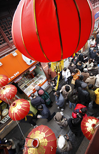 | 1月30日,上海七寶古鎮(zhèn)的一條老巷內(nèi)游人如織。本報記者 裴鑫