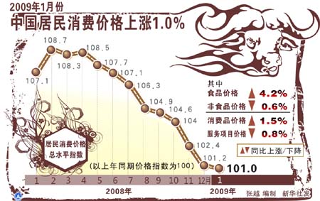 國家統(tǒng)計(jì)局10日公布,1月份我國居民消費(fèi)價(jià)格(CPI)同比上漲1%,漲幅比上月下降0.2個(gè)百分點(diǎn),碰觸到通貨緊縮的預(yù)警線;工業(yè)品出廠價(jià)格(PPI)同比下降3.3%,降幅比上月擴(kuò)大2.2個(gè)百分點(diǎn)。數(shù)據(jù)顯示,當(dāng)前我國通貨緊縮的風(fēng)險(xiǎn)正在增大。與之對(duì)應(yīng),市場(chǎng)預(yù)期央行未來將再次降息。