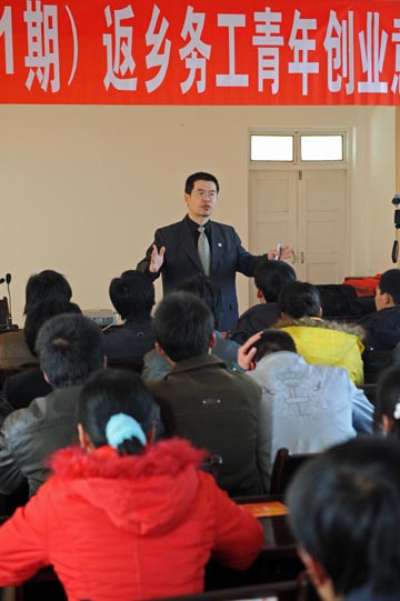 寧夏青年就業(yè)創(chuàng)業(yè)培訓中心的老師在寧夏中衛(wèi)市興仁鎮(zhèn)為青年農民講課。新華社記者:王鵬