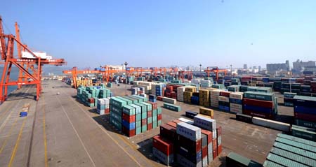 廣西防城港等待轉(zhuǎn)運(yùn)的集裝箱。(新華社發(fā)) |