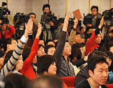 李肇星像個指揮家,從走進水泄不通的十一屆全國人大二次會議新聞發(fā)布會現場,這位發(fā)言人的一舉一動都會引來“咔咔咔”一連串的快門聲。這位中國前外長妙語連珠,不時引起現場陣陣笑聲。原定一個小時的新聞發(fā)布會被一再延長,最后用了將近兩個小時。 艷麗的服飾、彩色筆記本、加長話筒和揮舞的報紙都成為記者們爭取提問機會的“工具”!澳膲夭婚_提哪壺”、“患難見真情”、“君子愛財、取之有道”……李肇星這些生動語言給在場的記者留下了深刻印象。 “我是邊干邊學!崩钫匦瞧届o地看待自己從外交部長到全國人大外事委員會主任委員角色的轉變,“人的職務總是會有變化的,對我來說不變的是,我是祖國的兒子、人民的服務員、朋友的朋友、知識面前的小學生!彼f。 確實,在整場發(fā)布會中,他還像是以前的那位敏銳犀利的外長,但是又似乎不止如此,還像一個友善的朋友、一個勤奮的學生。 在一張一弛中,會場的氣氛變得既緊張認真,又輕松活躍。鳳凰衛(wèi)視一位短發(fā)美女記者站起身來,提出了節(jié)約辦會、會期縮短原因和地方為兩會代表發(fā)放補貼等一連串問題,李肇星聽完后側過頭去和坐在他右邊的新聞發(fā)布會主持人李連寧低聲交流了一下,兩人都笑了起來,他隨即正色道:“人大工作的特點是嚴格按照法律和法律程序辦事,剛才主持人已經宣布,每位記者只提一個問題,可是您一共提了3個!痹趫龅挠浾哳D時感受到這位前外長的鋒芒,但是,話鋒一轉,他又說,“在下不為例的前提下,我愿意回答你所有的問題!睅е鴿庵厣綎|口音的李肇星完全掌握了節(jié)奏。 他在新崗位上的學習成績看起來很不錯;卮鸸(jié)約辦兩會的問題時,他舉起了一個紅色的小本本告訴記者,《中華人民共和國憲法》中有“反對浪費”的規(guī)定,國宴都改革為三菜一湯,不上白酒了。后來,他又一次舉起了這本《中華人民共和國憲法》,托著腮說,“這一年多來,我學得最多的就是憲法!薄斑沁沁恰薄质且贿B串快門聲。 一位地方報紙的記者好不容易被點名,拿到話筒后顯得非常緊張,至少過了五秒鐘才意識到自己把話筒拿倒了,這把在場的記者都逗樂了,他的臉也漲得通紅。李肇星笑著對他說:“不要緊張嘛!”在新聞發(fā)布會結束時,李肇星還不忘對身邊的翻譯孫寧表示感謝,主席臺上并沒有這位年輕小伙子的名字,沖著這份尊重,現場的記者給了李肇星一陣熱烈的掌聲。