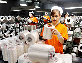 | 近年來,河北省保定天鵝化纖集團有限公司把技術(shù)創(chuàng)新作為老國企節(jié)能減排突破口,從細微技術(shù)環(huán)節(jié)中尋找節(jié)能減排切入點,在挑戰(zhàn)國外技術(shù)和設(shè)備中開辟節(jié)能減排新路徑,取得了良好的經(jīng)濟效益。圖為工人在保定天鵝化纖集團有限公司的質(zhì)檢車間工作。新華社資料照片 | “轉(zhuǎn)軌”已成為近年來中國經(jīng)濟社會發(fā)展的主題詞,為推動經(jīng)濟發(fā)展方式由粗放型向集約型轉(zhuǎn)軌中央進行了精心設(shè)計和布局,并出臺了一系列政策進行適時推動。如何處理好經(jīng)濟增長速度與轉(zhuǎn)變經(jīng)濟發(fā)展方式、提高經(jīng)濟增長質(zhì)量的關(guān)系既是一個多年前已提出的課題,也是當前國際金融危機背景下值得重視和深入研究的課題。 今年的政府工作報告明確提出,加快轉(zhuǎn)變發(fā)展方式,大力推進經(jīng)濟結(jié)構(gòu)戰(zhàn)略性調(diào)整。這再次吹響了經(jīng)濟發(fā)展由“粗放型”向“集約型”轉(zhuǎn)變的號角。