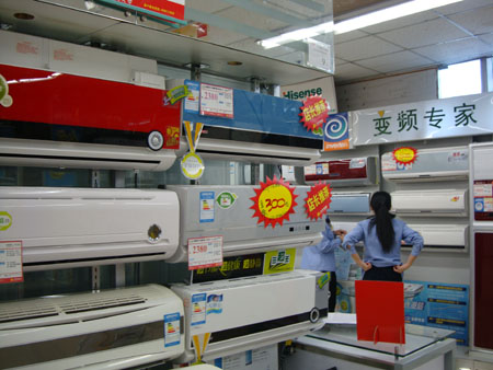 記者日前在北京大中電器牛街店走訪時(shí)看到,三星、海信、海爾、LG等多家空調(diào)產(chǎn)品都在降價(jià)。而在蘇寧電器馬家堡店,記者也屢屢可見“直降”幾百元字樣的優(yōu)惠活動(dòng),較為省電的直流變頻空調(diào)也有一定的降價(jià),直降活動(dòng)比大中電器要“高調(diào)”的多。 大中電器的一位空調(diào)導(dǎo)購員介紹說:“大型促銷活動(dòng)計(jì)劃正在醞釀中,目前已降價(jià)的產(chǎn)品款型不多,降價(jià)幅度也基本保持在四五百左右,并以能效為5級的定速空調(diào)機(jī)型或已淘汰的機(jī)型為主。個(gè)別型號的高能效變頻空調(diào)有一兩百元的小幅降價(jià)! 據(jù)了解,空調(diào)廠商目前已經(jīng)進(jìn)入了銷售倒計(jì)時(shí),往年從5、6月開始的空調(diào)銷售旺季在今年已被提前到3月初。 在蘇寧電器馬家堡店,記者注意到,不同能效等級的空調(diào)產(chǎn)品價(jià)格相差很多,某國產(chǎn)品牌的空調(diào)價(jià)簽上顯示,能效為2-3級的變頻空調(diào)售價(jià)大部分在3000元以上,而能效為5級的定速空調(diào)最便宜的售價(jià)則僅為1000元左右。 剛裝修完房子的李小姐希望買到一款價(jià)格比較合適的空調(diào)產(chǎn)品。她說:“耗電量高的定速空調(diào)馬上就要被淘汰了,機(jī)型比較舊,也不夠節(jié)能,所以還是傾向于買2—3級的變頻空調(diào)!