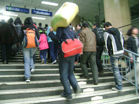 一個普通工作日的下午,記者從地鐵2號線的積水潭站開始了北京軌道交通體驗之旅。為了親身體驗下一般外地游客的地鐵經歷,記者首先以北京北站為目的地開始了體驗。 百度地圖上對北京北站的解釋是:從積水潭乘坐地鐵2號線,至西直門,步行150米即到。積水潭至西直門地鐵只有一站地,行程大概三分鐘。那么,如果順利的話,我將會于十分鐘內到達北京北站。 首先進入的是積水潭地鐵的C口,準備下行。站內窗明幾凈,剛剛擦過的地板還反著水光,貼心的阿姨在扶手處掛上了“小心地滑”的警示牌。只是下行沒有電梯,這讓我想起了無數個假期,回老家時為了倒2號線去北京站,拖著大箱子下樓梯的痛苦經歷。不過好在今天行李不多,可以輕松上陣,安檢也只是讓我打開包給他看了看就過去了。 工作日的下午,地鐵里人并不多。列車沒多久就把我?guī)У搅宋髦遍T。西直門站的指示牌提示我向A口出發(fā),去往北京北站。西直門站比積水潭站擁擠不少,常能看見背著扛著大包小包的乘客們。換乘處沒有電梯,我注意到一對行李很多的老夫妻把箱子拎在手上,十分辛苦。上了一截樓梯之后,開始平路轉彎,阿姨的拉桿箱終于發(fā)揮了作用。令人匪夷所思的是,轉過兩個彎,我們又開始下樓梯。再轉過一個彎,我徹底絕望:前面一條長長的上行樓梯擺在面前,叔叔阿姨休息了一下,接著拎起行李,一鼓作氣走了上去。走上樓梯之后我驚訝地發(fā)現,我們居然回到了原來的地方,只是中間隔了一個護欄,原來我們上上下下走了那一圈,只是為了從護欄那頭翻過來。 無奈繼續(xù)前行,終于來到了13號線和去往北京北站路口的分界口,去往十三號線的乘客終于繞到頭了,而我的路卻還沒有完。 出了出口,前面是一條長長的走道。走道里幾乎沒有人,心里有點發(fā)虛,趕緊快步通過。好在出來之后就看到了北京北站的指示牌,心里終于有了底。向左邊一望,是13號線倒2號線的露天轉線段,心里不由得有點慶幸,雖然樓梯上上下下幾趟,終究還是在地下,那些倒13號線的乘客可辛苦多啦。 一路都是單向行走道,順著路就到了北京北站的門口。令我詫異的是,這里也有一個地鐵出口。可是,我剛才順著路標,為什么不是從這個口出來呢?令人一頭霧水。 對一下時間,到達北京北站時間是14點40分,從14點02分積水潭站出發(fā)算起,共經歷38分鐘。其中真正乘地鐵的時間只有不到五分鐘。也就是說,有30多分鐘的時間消耗在了地鐵換乘中無數上上下下的樓梯中…… 如果說離西直門地鐵口只有150米的北京北站是“小巫”的話,那么乘坐地鐵到軍事博物館站下車前往北京西站的經歷則是“大巫”。這不僅因為早在北京地鐵線路圖中有所規(guī)劃的北京西站地鐵站一直沒有建起來,乘客目前得在軍事博物館和西站之間,提著準備上火車的大包小包走路20分鐘左右,或者乘坐其他交通工具(包括在軍事博物館地鐵口不時批量出現的“黑摩的”);更因為地鐵線路之間的銜接不便造成的困擾。 令記者吃驚的是,當記者問到工作人員“從北京西站去地鐵13號線回龍觀站,請問怎么走比較方便”時,北京西站服務臺的工作人員竟然不推薦記者乘坐看上去更快捷的地鐵。該工作人員回答說:“雖然北京西站離地鐵1號線的軍事博物館站最近,但如果從北京西站去回龍觀的話,不推薦在軍事博物館換乘地鐵,因為這樣會多倒乘一次,而且1號線換2號線在復興門換乘距離很長,提著大包小包十分不便,所以建議從北京西站北出口出來后,在站前坐67路,特2路,或301路到長椿街路口東,直接在地鐵2號線的長椿街站換地鐵2號線,到西直門,再換乘地鐵13號線前往回龍觀。” 記者于是決定體驗一下如何從“1號線換乘2號線”。在復興門地鐵站,我下了2號線后,跟隨一個大爺前往1號線的換乘通道,走了將近16分鐘,中間大爺歇了三次。他一路抱怨“路太長,修個電梯多方便”。從一線換乘環(huán)線要走將近一公里路。再加上通道內路況不適合行走,使得老年人在換乘通道內行走十分困難。很多乘客認為換乘太擁擠,老年人和殘疾人走著很吃力,女白領們穿著高跟鞋很不方便。 那么,13號線與2號線之間的換乘如何呢?記者在工作日早上7:10和傍晚7:30左右跟隨在城鐵13號線霍營站附近居住、在地鐵2號線復興門站附近上班的吳先生體驗了一回。早上,記者首先從吳先生居住的小區(qū)門口花10元錢打“黑車”,五分鐘后到了霍營城鐵站。乘坐城鐵13號線到了西直門站后,記者先下兩趟樓梯,跟著擁擠的上班族人群走了一段被隔欄隔開的繞彎路,然后又開始上樓梯,數不清上下左右了多少回,走了一刻鐘才到,而這人流的速度可比上文提到的老大爺快了不止一倍。 更讓人啼笑皆非的是,當跟著吳先生一起走下班回家的路,從地鐵2號線的西直門站換乘地鐵13號線時,竟然更加復雜,離城鐵最近的2號線地鐵口只能進人不能出人,得從一個馬路對面的地鐵口在地下走一個U字形,繞到以往只用1/3時間就能到達的13號線站口。據乘客反映,這個規(guī)定是上個月才出的,地鐵工作人員只是在站內貼了個通知,并未征求乘客意見,也不由得乘客反駁。 怪不得記者在東直門站遇到的一位首次換乘城鐵的外地人說,他剛才從東直門地鐵出來,問了好幾個人才找到了距地鐵站200米左右的城鐵站,可一進去后就郁悶了,原來他被告知這個是出站口不能入站!霸诒本┑罔F里盡迷路。”外地小