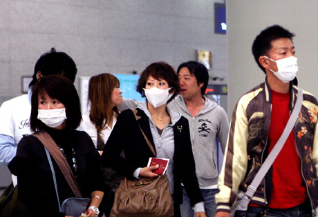 4月29日,部分抵達(dá)上海浦東國(guó)際機(jī)場(chǎng)的旅客佩戴口罩。 針對(duì)國(guó)際上豬流感疫情不斷擴(kuò)大的形勢(shì),上海浦東國(guó)際機(jī)場(chǎng)的檢驗(yàn)檢疫部門(mén)及時(shí)采取多項(xiàng)措施,包括全面加強(qiáng)出入境人員的體溫監(jiān)測(cè)、醫(yī)學(xué)巡查和檢疫查驗(yàn)等形式,尤其加強(qiáng)對(duì)來(lái)自北美地區(qū)旅客的查控,嚴(yán)防豬流感病毒傳入。新華社記者
