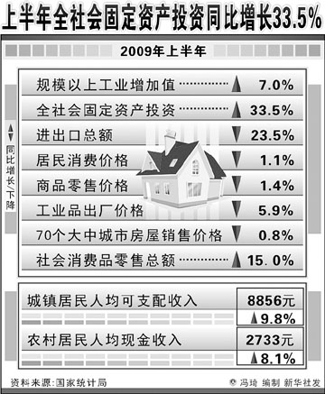 “一個(gè)加快”,國(guó)內(nèi)需求增長(zhǎng)加快。李曉超說,擴(kuò)大內(nèi)需是經(jīng)濟(jì)企穩(wěn)回升的動(dòng)力和抓手。今年上半年,全社會(huì)固定資產(chǎn)投資同比增長(zhǎng)33.5%,比一季度加快4.7個(gè)百分點(diǎn),上半年社會(huì)消費(fèi)品零售總額增長(zhǎng)15%,而且內(nèi)需增長(zhǎng)中有兩個(gè)較為突出的亮點(diǎn),即商品房銷售增長(zhǎng)明顯,汽車銷售增長(zhǎng)較快,分別增長(zhǎng)31.7%和17.7%。
