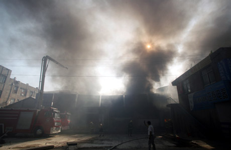 8月13日,位于濟南市北園大街東段的一個五交化倉庫起火,冒出滾滾濃煙。接到報警后,當(dāng)?shù)叵啦块T出動官兵趕往現(xiàn)場實施滅火。經(jīng)過2個多小時的努力,火勢得到控制,所幸大火沒有造成人員傷亡。目前起火原因正在調(diào)查中。新華社發(fā)