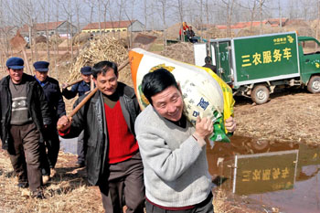 莒縣郵政三農(nóng)服務(wù)車開到田間地頭。(資料照片) | 針對農(nóng)民長期面臨的農(nóng)資“買難”問題,近年來,山東省郵政依托遍布城鄉(xiāng)的網(wǎng)絡(luò)優(yōu)勢,構(gòu)建“省-市-縣-鄉(xiāng)-村”五級分銷配送網(wǎng)絡(luò),開辟農(nóng)村流通市場,較好滿足了農(nóng)民多元化需求,促進(jìn)了農(nóng)民增產(chǎn)增收,又拉動了農(nóng)村消費。 交通運輸部、商務(wù)部、農(nóng)業(yè)部、國家郵政局和中國郵政集團(tuán)公司等部門聯(lián)合調(diào)研認(rèn)為,山東郵政在打造農(nóng)村物流新模式方面進(jìn)行了有益的探索和實踐,值得在全國推廣。