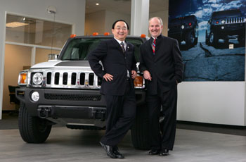 10月9日,美國通用汽車公司已就出售其悍馬品牌事宜與中國四川騰中重工有限公司簽署最終協(xié)議。這是10月8日在美國密歇根州紹斯菲爾德,悍馬公司首席執(zhí)行官泰勒(右)和四川騰中重工機械有限公司總經理楊毅在一輛悍馬汽車前合影。新華社/法新 |