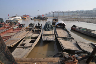 岳陽洞庭湖畔提早歇業(yè)的漁船。 |