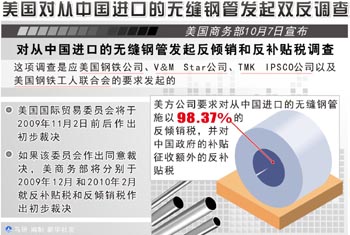 2009年4月,美國先針對我石油管發(fā)起反傾銷反補貼的“雙反”調(diào)查,10月7日,又宣布對包括管線管、標準管和壓力管在內(nèi)的中國鋼管發(fā)起“雙反”調(diào)查,對我國鋼管整體出口造成了嚴重影響。 中國鋼結(jié)構(gòu)協(xié)會鋼管分會提供的數(shù)據(jù),2009年1-9月,我國出口美國無縫鋼管35.5萬噸,同比降低了約70%。其中石油管1-8月出口美國31萬噸,同比降低71%。預計2009年全年,我出口美國無縫鋼管約40萬噸,同比降低83%,其中石油管31.5萬噸左右,同比降低86%。目前,我國除普通機械管還有部分出口外,大多數(shù)無縫鋼管對美出口業(yè)務已陷入停滯。 近年來,我國無縫鋼管行業(yè)對出口的依賴度過高,2008年無縫鋼管出口占鋼管行業(yè)總出口的60%,金融危機爆發(fā)后國際原油價格不斷走低,國外市場需求低迷導致出口型企業(yè)業(yè)務出現(xiàn)整體大幅下滑。加之從去年開始至今,歐盟、加拿大、美國相繼對我國無縫鋼管提出“雙反”,使無縫鋼管行業(yè)更是雪上加霜,嚴重影響到企業(yè)的正常生產(chǎn)和經(jīng)營。 據(jù)中國鋼結(jié)構(gòu)協(xié)會鋼管分會統(tǒng)計,2008年我國共出口無縫鋼管609萬噸,2009年1-9月出口只有236.2萬噸,預計2009年全年出口無縫鋼管300萬噸左右,同比降低50%左右。 記者了解到,美國是近幾年來中國無縫鋼管出口最大的目的國。我國輸美無縫鋼管主要有石油管、管線管、標準管和壓力管四類產(chǎn)品,其中石油管的出口量和金額最大。據(jù)中國鋼結(jié)構(gòu)協(xié)會鋼管分會統(tǒng)計,2008年,我國對美出口無縫鋼管229萬噸,占出口總量的37%。其中向美出口石油管222萬噸,占出口美國無縫鋼管總量的97%。