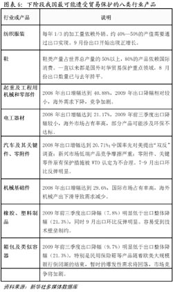 對(duì)出口地執(zhí)政黨穩(wěn)固政權(quán)形成重要支持的行業(yè)。以美國(guó)為例,由于工會(huì)在民主黨執(zhí)政基礎(chǔ)中具有重要作用,且2010年美國(guó)面臨中期選舉,美國(guó)對(duì)華貿(mào)易摩擦進(jìn)一步加劇難以避免。而美國(guó)針對(duì)中國(guó)產(chǎn)品的貿(mào)易保護(hù)政策示范作用非常明顯,尤其是歐洲市場(chǎng)往往帶頭效仿。
