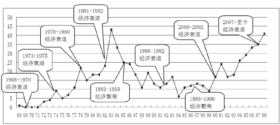 “337條款”是美國《1930年關稅法》第337節(jié)的簡稱,現(xiàn)被匯編在《美國法典》第19卷第1337節(jié),主要調查進口貿(mào)易中侵犯知識產(chǎn)權以及其他不正當競爭的行為。通過美國歷次貿(mào)易立法不斷對“337條款”的修正與發(fā)展,該條款成為美國重要的貿(mào)易保護手段之一。 1929年美國經(jīng)濟大蕭條是將“337條款”寫進《1930年關稅法》中的主要動因。1969-1970年的美國經(jīng)濟危機以及20世紀70年代以來的美國貿(mào)易逆差,則使“337條款”成為新時期貿(mào)易保護的重要法律工具。 綜觀337調查的發(fā)展歷程,可見337調查和經(jīng)濟危機是相伴相生:正是由于美國經(jīng)濟危機的頻繁發(fā)生,“337條款”應運而生,也正是由于美國經(jīng)濟危機的規(guī)律性發(fā)作,337調查得以翻云覆雨。當經(jīng)濟衰退的時候,337調查就快速增長,而且和經(jīng)濟衰退的程度緊密相關;當經(jīng)濟繁榮的時候,337調查就快速下滑或處于低谷。(見下圖)