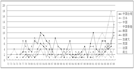 作為美國貿(mào)易保護主義的典型代表和貿(mào)易制裁的單方條款,337調查給國際貿(mào)易和產(chǎn)業(yè)發(fā)展帶來了很大的負面影響,并引發(fā)了世界各國的強烈不滿。 1983年,加拿大政府向GATT提請成立專家小組認定337條款違反GATT的規(guī)范;1989年,歐洲共同體向GATT就337條款與GATT之規(guī)定不符提請專家小組審理;2000年,歐盟要求在WTO框架下進行337條款的磋商,加拿大、日本也相繼加入;此外,美國國內(nèi)主張自由貿(mào)易的力量也對337條款頗有微詞。 20世紀70年代,隨著日本經(jīng)濟的振興和產(chǎn)品大量出口美國,日本成為337調查的主要目標,中國臺灣、中國香港和韓國等緊隨其后;20世紀80年代,中國臺灣超越日本,成為337調查的最大目標,日本、德國和中國香港緊隨其后,也是337調查的主要國家和地區(qū);20世紀90年代,隨著美國經(jīng)濟的繁榮和對外貿(mào)易的需要,337調查也相應的進入低谷,受調查最多的國家和地區(qū)依次為中國臺灣、日本、加拿大和德國。進入21世紀以來,隨著中國產(chǎn)品大量出口美國,中國已成為337調查的最大目標國。隨著美國經(jīng)濟的衰退和貿(mào)易保護主義的抬頭,針對中國臺灣、日本、德國、韓國、中國香港、加拿大等國家和地區(qū)的337調查也在快速增長。(見表、圖)