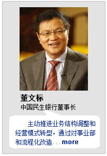 嚴(yán)峻的金融危機(jī)加速了經(jīng)濟(jì)結(jié)構(gòu)調(diào)整的進(jìn)程,各行業(yè)變革的力量推動(dòng)行業(yè)升級(jí),激化出旺盛的生命力。董文標(biāo)再造民生銀行,超常規(guī)創(chuàng)新發(fā)展模式,實(shí)現(xiàn)對(duì)中小企業(yè)的大規(guī)模資金支持,作為產(chǎn)業(yè)的發(fā)動(dòng)機(jī)金融業(yè)開始從行業(yè)源頭發(fā)力。其獲獎(jiǎng)理由是:“走路飛快的小個(gè)子,領(lǐng)導(dǎo)著民字頭的企業(yè)航母。因?yàn)樯朴趶奈C(jī)中掘金,他實(shí)現(xiàn)了今年最大的IPO。助力四萬(wàn)個(gè)中小企業(yè),他讓細(xì)流匯成江海。以民為本,生生不息”。 文化體制改革深入推進(jìn),進(jìn)一步解放了生產(chǎn)力。譚躍領(lǐng)導(dǎo)鳳凰出版?zhèn)髅郊瘓F(tuán)旗下的出版社全部轉(zhuǎn)企改制,實(shí)現(xiàn)了公司化和股份制改造,創(chuàng)造式探索使譚躍成為中國(guó)出版界第一個(gè)百億集團(tuán)的董事長(zhǎng)。其獲獎(jiǎng)理由是:“他是文化產(chǎn)業(yè)的創(chuàng)意先鋒,飛越體制的關(guān)山,歷盡市場(chǎng)的考驗(yàn)。他以一連串大刀闊斧的改革,構(gòu)建起中國(guó)出版界第一個(gè)百億集團(tuán)。鳳凰從此涅槃”。 作為新媒體的代表,曹國(guó)偉用一系列資本并購(gòu)和股權(quán)改革,給“新浪模式”注入了新的內(nèi)容。其獲獎(jiǎng)理由是:“寫博客,戴‘圍脖’,他不斷刷新媒體的定義。借資本魔方,立門戶方圓。十年弄潮,他勇立浪首”。