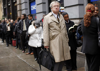 在美國紐約,52歲的埃里克·利佩斯在招聘會現(xiàn)場外排隊(duì)等候。新華社發(fā) | 美國總統(tǒng)奧巴馬將于當(dāng)?shù)貢r(shí)間27日晚9時(shí)發(fā)表上任后的首次國情咨文,屆時(shí)美國的未來經(jīng)濟(jì)發(fā)展規(guī)劃將公布于眾。目前美國失業(yè)率高達(dá)兩位數(shù),奧巴馬的支持率面臨上任以來的低點(diǎn),國內(nèi)政策挑戰(zhàn)重重,醫(yī)療改革舉步維艱。奧巴馬帶領(lǐng)美國經(jīng)濟(jì)的下一步走向如何,是否會推出第二輪經(jīng)濟(jì)刺激方案,成為當(dāng)下關(guān)注的焦點(diǎn)。 據(jù)悉,國情咨文中將包含凍結(jié)部門財(cái)政預(yù)算、扶助中產(chǎn)階級改善就業(yè)等信息。據(jù)傳奧巴馬還將公布新的一攬子經(jīng)濟(jì)刺激方案,預(yù)計(jì)耗資1750億美元。不過,接受記者采訪的多位專家表示,美國經(jīng)濟(jì)復(fù)蘇已取得成果,無須新的刺激方案,此次奧巴馬即將宣布的新經(jīng)濟(jì)方案更多是為滿足其政治訴求。