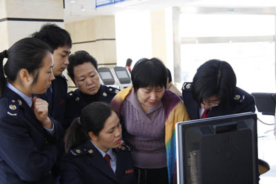以優(yōu)化納稅服務(wù)為核心的新征管模式改革,最近在福建漳浦縣國稅局成功運(yùn)行。這是繼漳州市薌城區(qū)國稅局之后,該省又一個(gè)試點(diǎn)單位成功運(yùn)行新征管模式。圖為漳浦縣國稅局辦稅服務(wù)大廳窗口人員正在演示新征管業(yè)務(wù)流程。