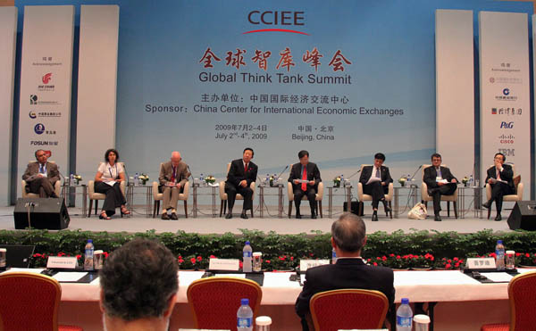 于2009年7月2日在北京開幕的全球智庫(kù)峰會(huì),吸引了全球100多個(gè)智庫(kù)和國(guó)際組織的代表與專家參加,共同研討國(guó)際經(jīng)濟(jì)危機(jī)發(fā)展趨勢(shì)及經(jīng)濟(jì)發(fā)展之策。新華社記者