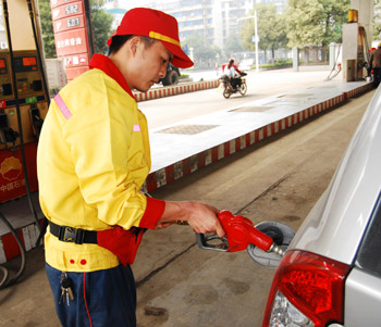 2月27日,湖南省郴州市區(qū)一家加油站的工作人員給一輛公務(wù)車加油。新華社記者 賀茂峰/攝