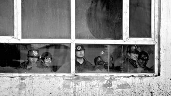 幾名礦工在救援現(xiàn)場(chǎng)等待參加救援。資料照片 |